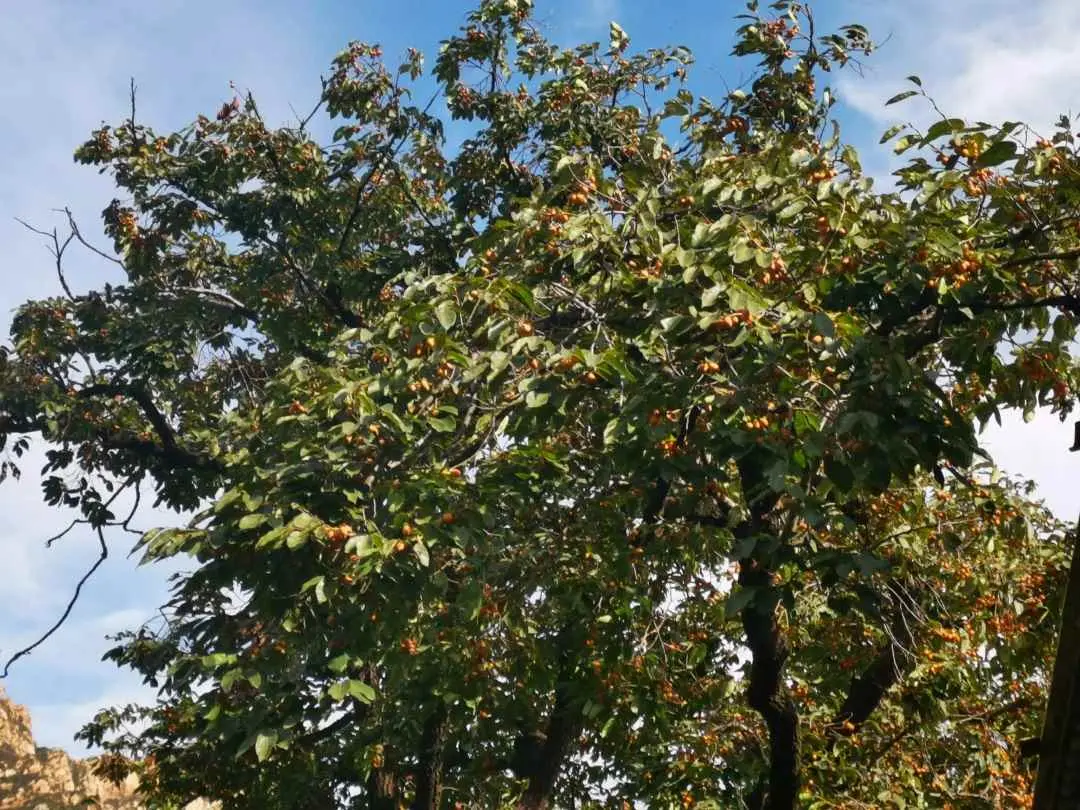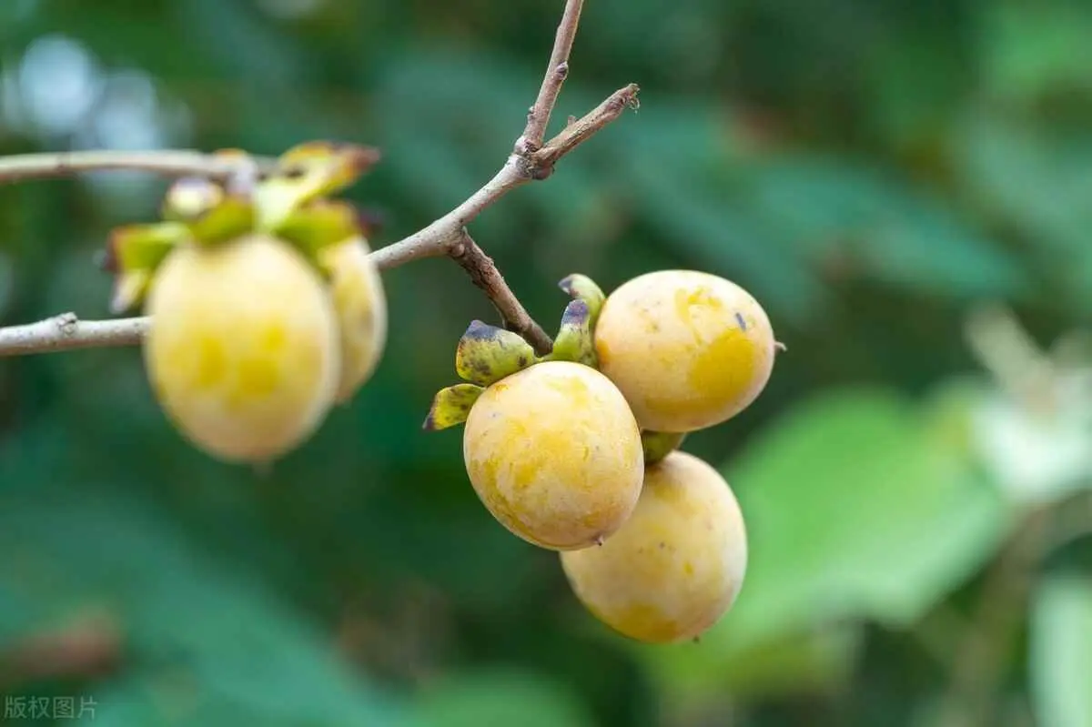 10月份,黑枣果实进入成熟期,果实呈金黄色挂在树枝上。但这时候是不能吃的,因为此时果肉味道涩口难吃,因此黑枣成熟后人们不着急着采摘,任由它们一颗颗挂在树枝上。