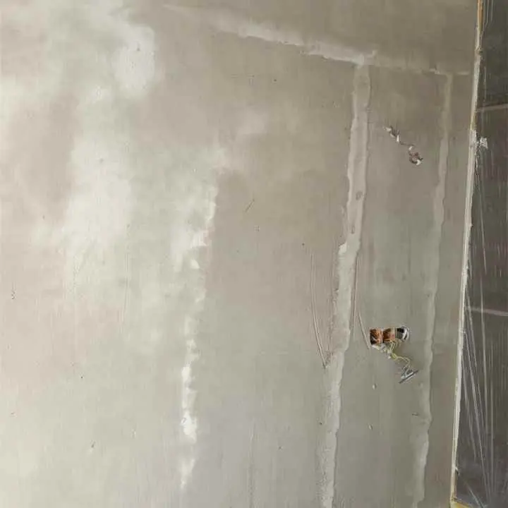 混凝土墙面做好之后,首先第一道工序是在原墙面上抹水泥砂浆,这相当于基层找平层,在此基础上,下一步要做的工作是用粉刷石膏或者免胶石膏再一次找平。