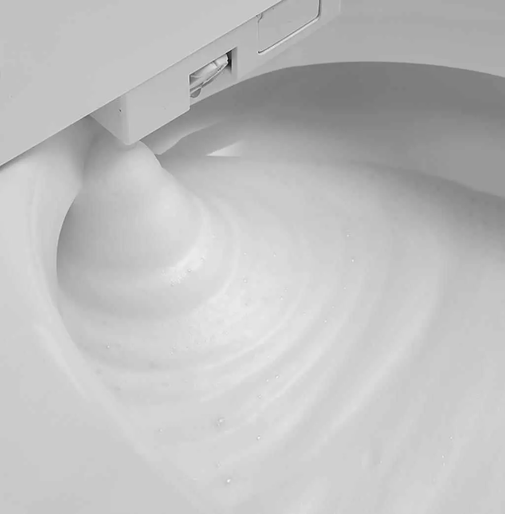 3.泡沫,也是人体感应装置提供的功能。在检测到人坐在马桶上以后,会从水箱里流出一些泡沫来。这层泡沫会铺在马桶底部的水封表面,类似于在水封表面铺了一层卫生纸。这样在大便的过程中,就不会发生溅水的问题了。