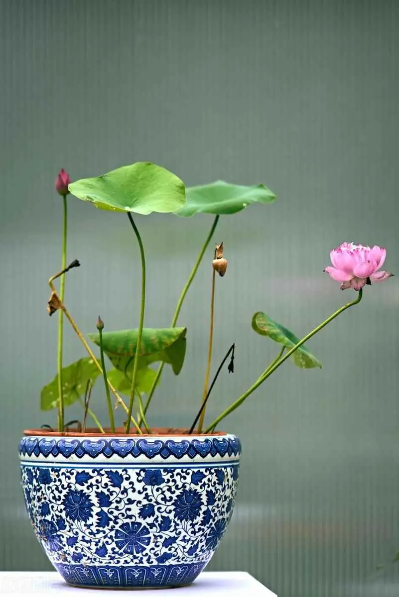 家庭养荷花,需匠心独运。择碗莲、并蒂莲等雅品,配以瓷盆、紫砂之器,方显风雅。土壤宜肥沃粘壤,湖塘泥最佳,佐以豆饼、骨粉为基肥,为荷花筑梦之基。种藕需健壮,头低尾高,芽头向上,覆土适中,静待生机。