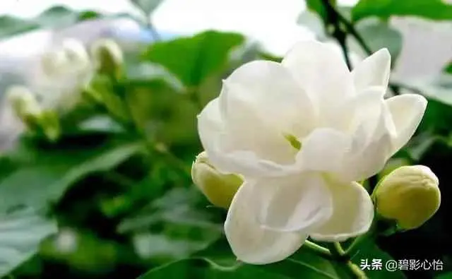 大家都知道这个茉莉花是开花植物,氮元素它只是长茎干叶的,适合观叶植物,像龟背竹、绿萝、虎皮兰等等那些观叶性的花卉,它是适合的,要想开花还得以磷钾元素为主,所以我们只是小苗的时候,可以用氮元素,长到三四对叶子之后,我们就应该换成磷钾元素的肥料,用一些复合溶液肥,或者我们就是用些磷酸二氢钾或者花多多二号,进行催花,促进花芽分化,能够多孕蕾,多开花,花朵还能大。