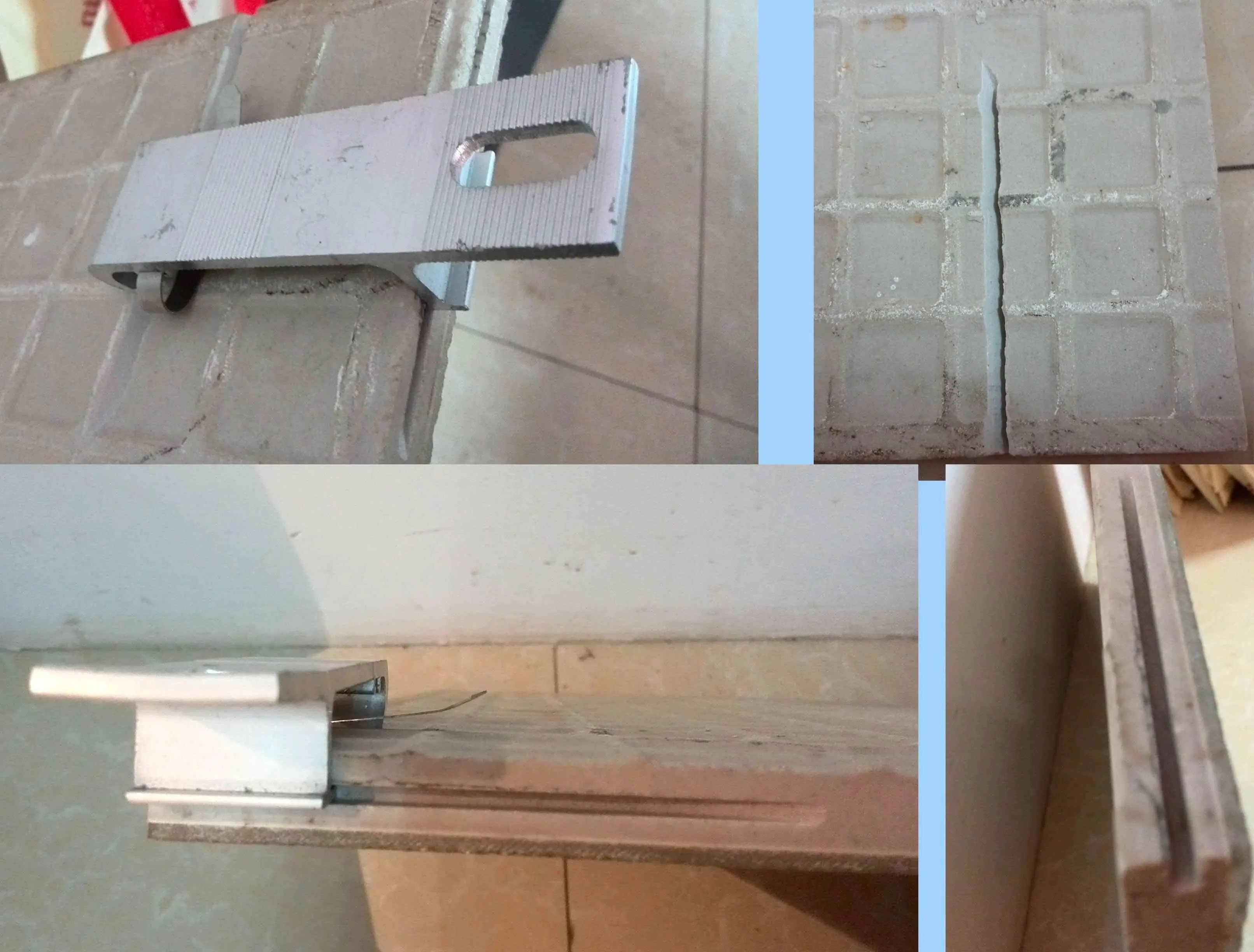 方法是先在瓷砖背面开两个小槽,开槽深度3mm~5mm。把挂钩放进槽里,用云石胶进行粘贴——没错,挂钩是粘在瓷砖上的。