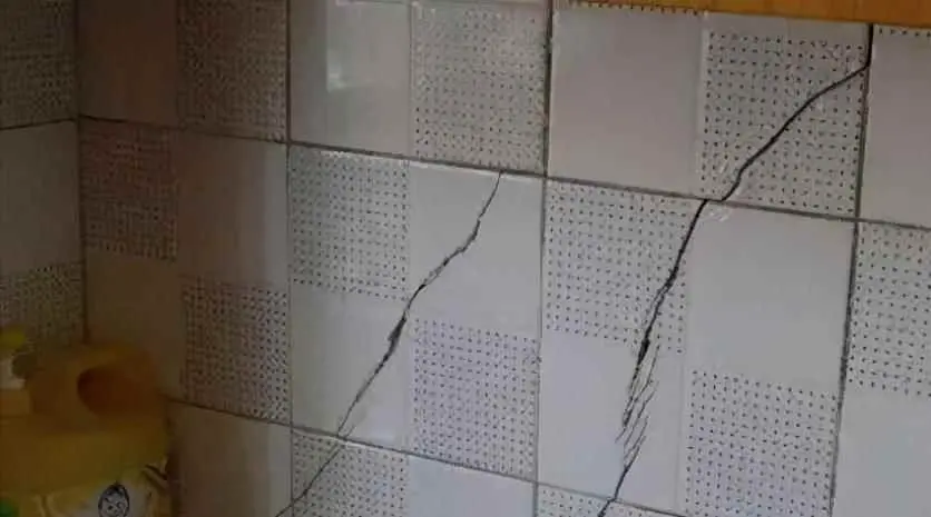 楼体自身由于地质问题会产生一定程度的沉降,从而引起墙体开裂,进而引发墙体表面瓷砖的开裂,这种情况出现的裂纹一般都呈惯通线。