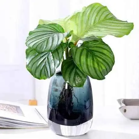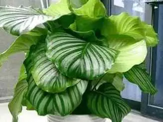 青苹果竹芋是室内喜阴观叶植物。叶形浑圆,叶质丰腴,叶色青翠,条纹整齐,观赏性极强,既优雅标致,又清新宜人。