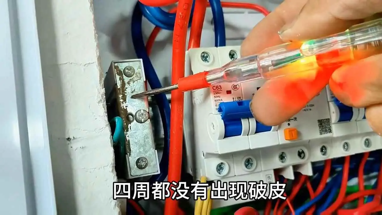 一个奇怪的现象:配电箱外壳带电。打开配电箱的盖子,用测电笔测量一下这两个固定螺丝,这两颗螺丝带电是什么原因导致的配电箱外壳带电?如果是漏电,漏电开关会跳闸的,但是漏电开关没有跳闸。