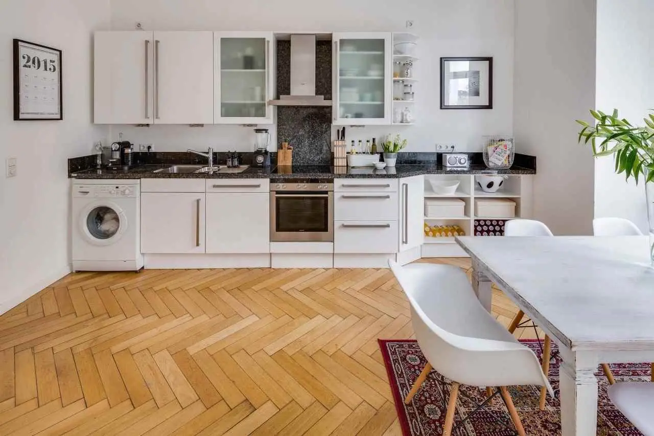 洗衣机放厨房,这种摆放洗衣机的方法,通常是欧美风格的代表,特别是美国这个国家,美式家居装修风格,它的功能区功能是很清晰的,家里厨房面积会比较大,有时候餐厅都会包在厨房里面,放洗衣机也不足为奇。更何况厨房周围密布水源与电源,用水、用电都方便。