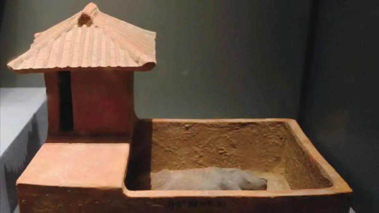 汉朝时期,厕所一般设在宅院的后方,搭建在高处,下面连通猪圈,人排泄出来的粪便可以直接掉进猪圈给猪吃,这种厕所叫作“圂”。圂厕的好处有三个。首先,把厕所和猪圈两个污秽处结合在一起,减少了污染源,并将人畜粪合一,方便清理利用。其次可以做为猪的辅助饲料,另外厕所建在猪圈上方很好的整合了空间利用,但是猪的食用味道多少有点让人作呕和传染病菌。