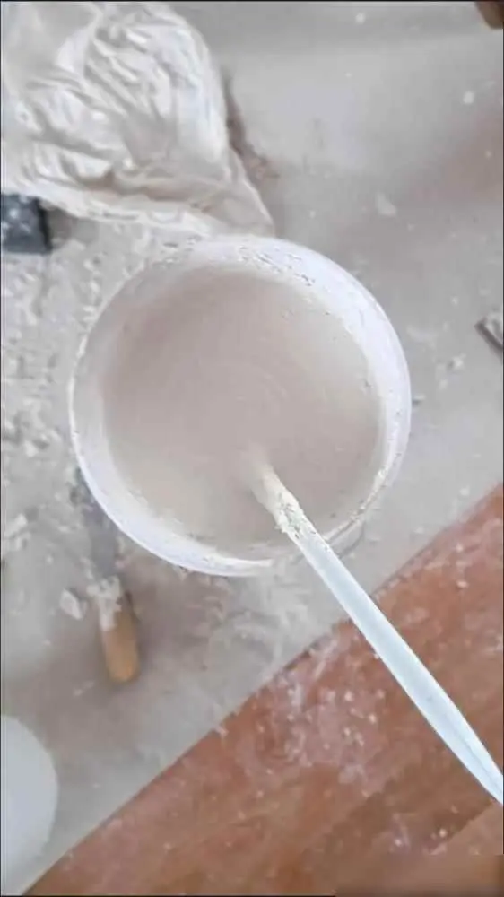 此次施工过程中,工人不仅需要调配腻子粉,还需要在其中加入一定比例的胶水,以帮助改善效果。