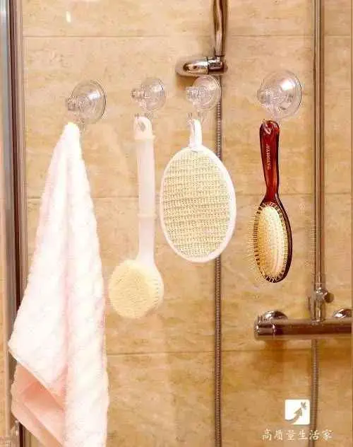吸盘挂钩是几乎是每家每户都会用到的收纳工具,将吸盘在瓷砖上一吸可用来悬挂东西,也不会伤害墙壁,是厨房和卫生间中收纳的好帮手。