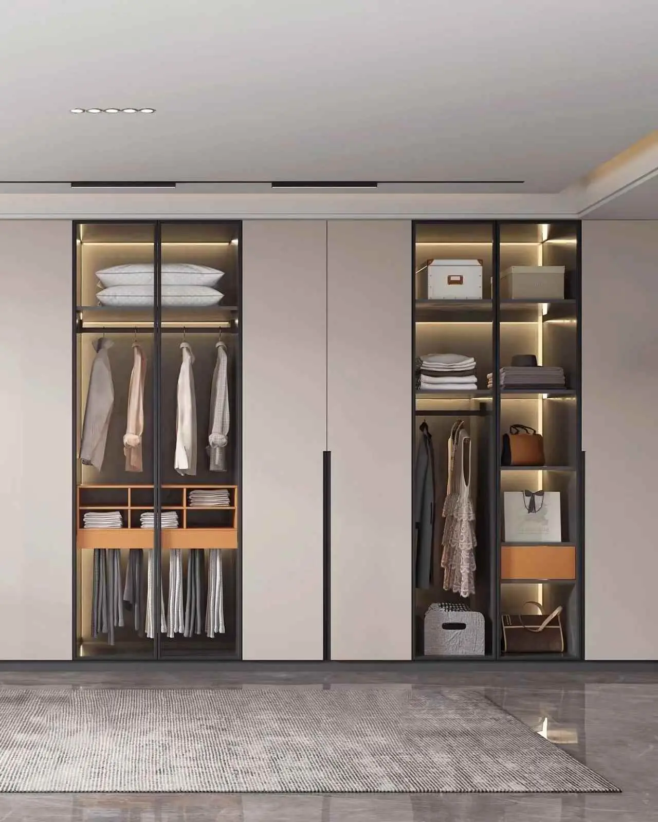 2、分隔器:这种装置可以进行滑动,用于衣柜内部的调节和空间的分配,对于提高空间利用率和整理衣物很有帮助。衣柜分隔器能够更好地收纳和整理衣物,让衣柜更整洁有序。可以根据具体的需求来选择不同的分隔器,衣柜分隔器主要有以下几种: