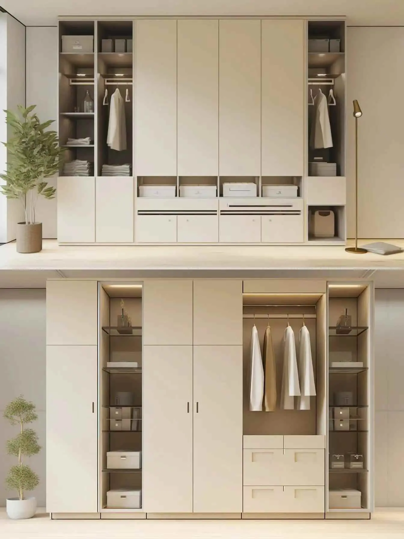 衣柜的布局结构应根据个人需求和风格偏好来进行不同的选择。以下是一些常见的实用衣柜布局结构: