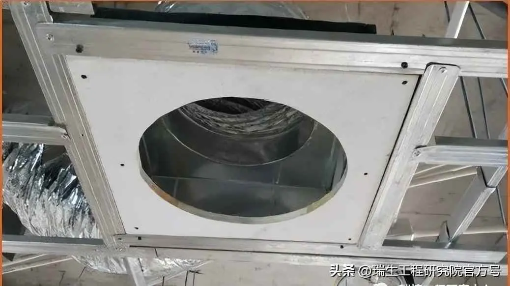 - 空调风口及周边挂18mm厚细木工板,板内涂黑,板外侧覆单层9.5mm石膏板。