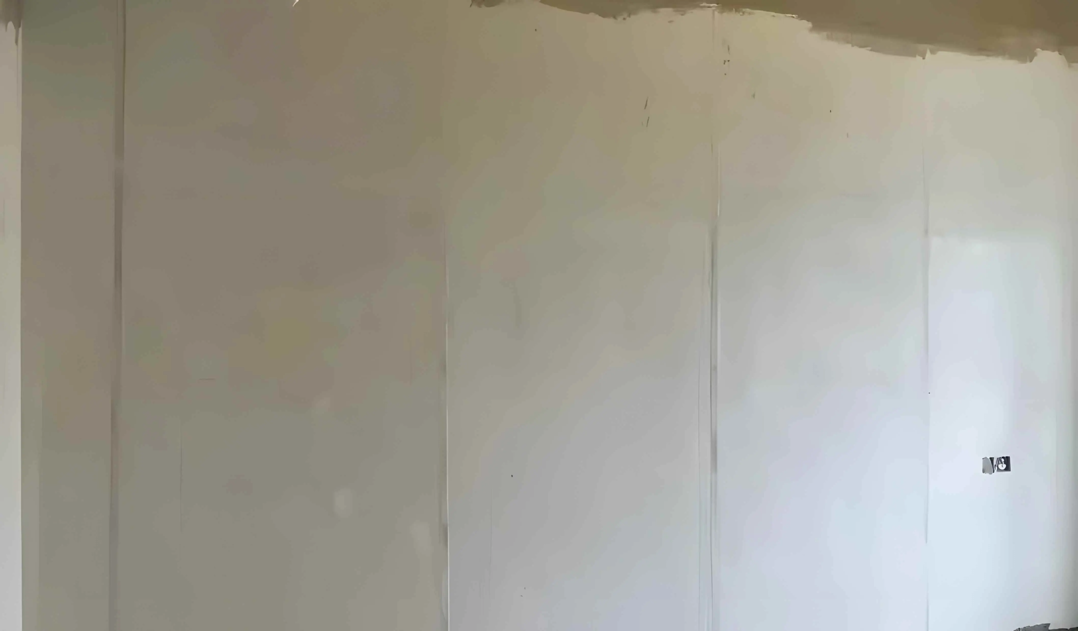 冲筋完成后,等筋晾干,用粉刷石膏填补空余位置,之后拿靠尺由下至上刮抹压实就可以。这样处理的墙面平整且垂直,因此在安装定制柜的墙面,我们通常用这种工艺来做。