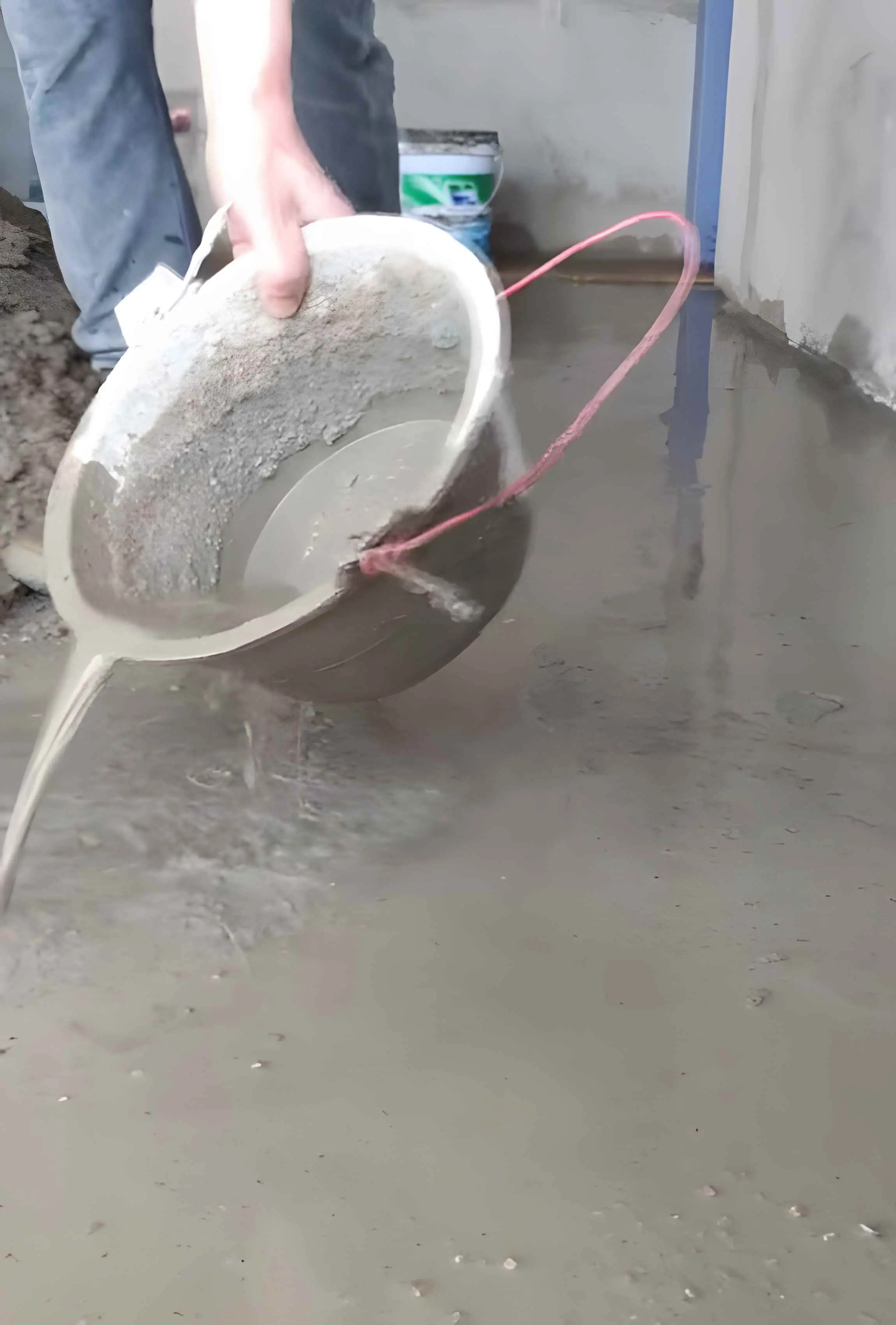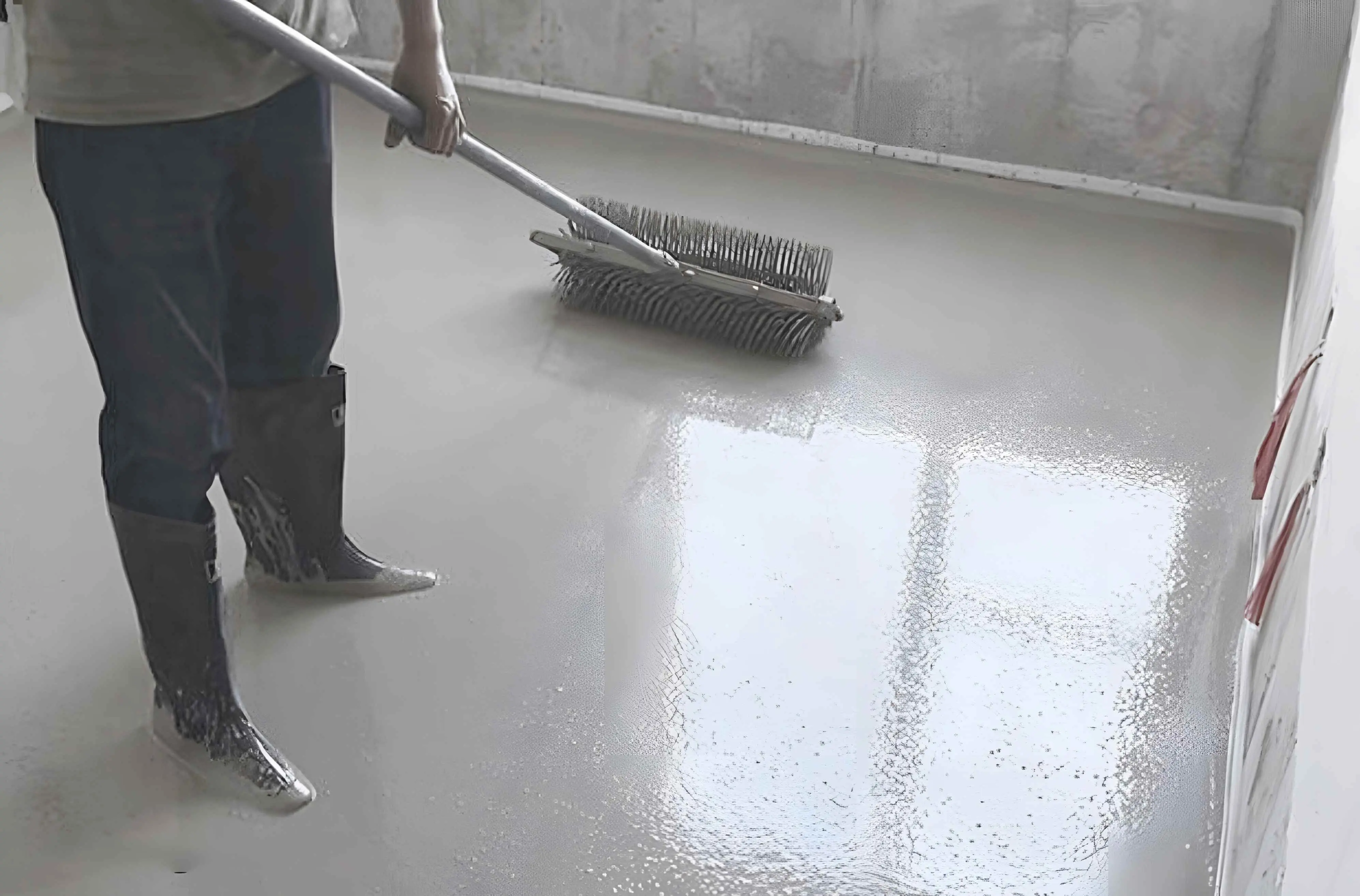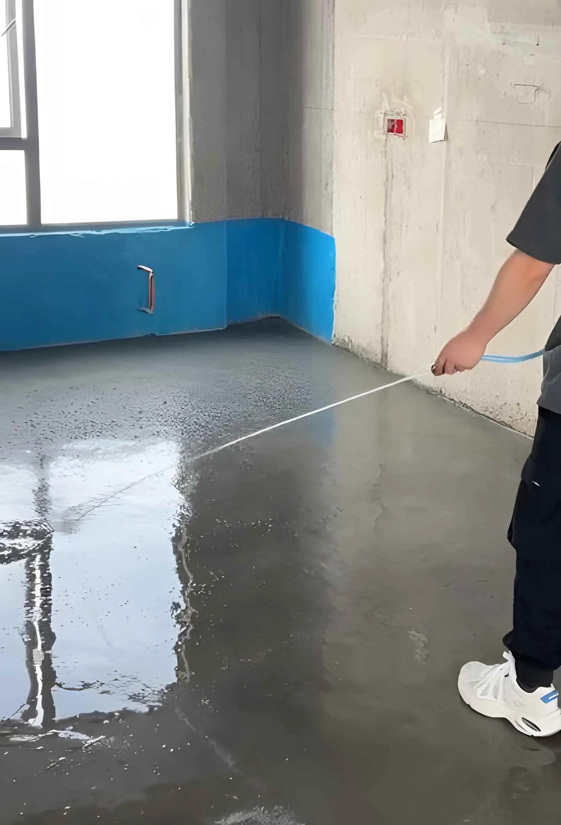将搅拌好的浆体浇筑到基面上,让其像水一样流开,如果施工厚度小于10mm,则应该用刮板进行辅助流平。
