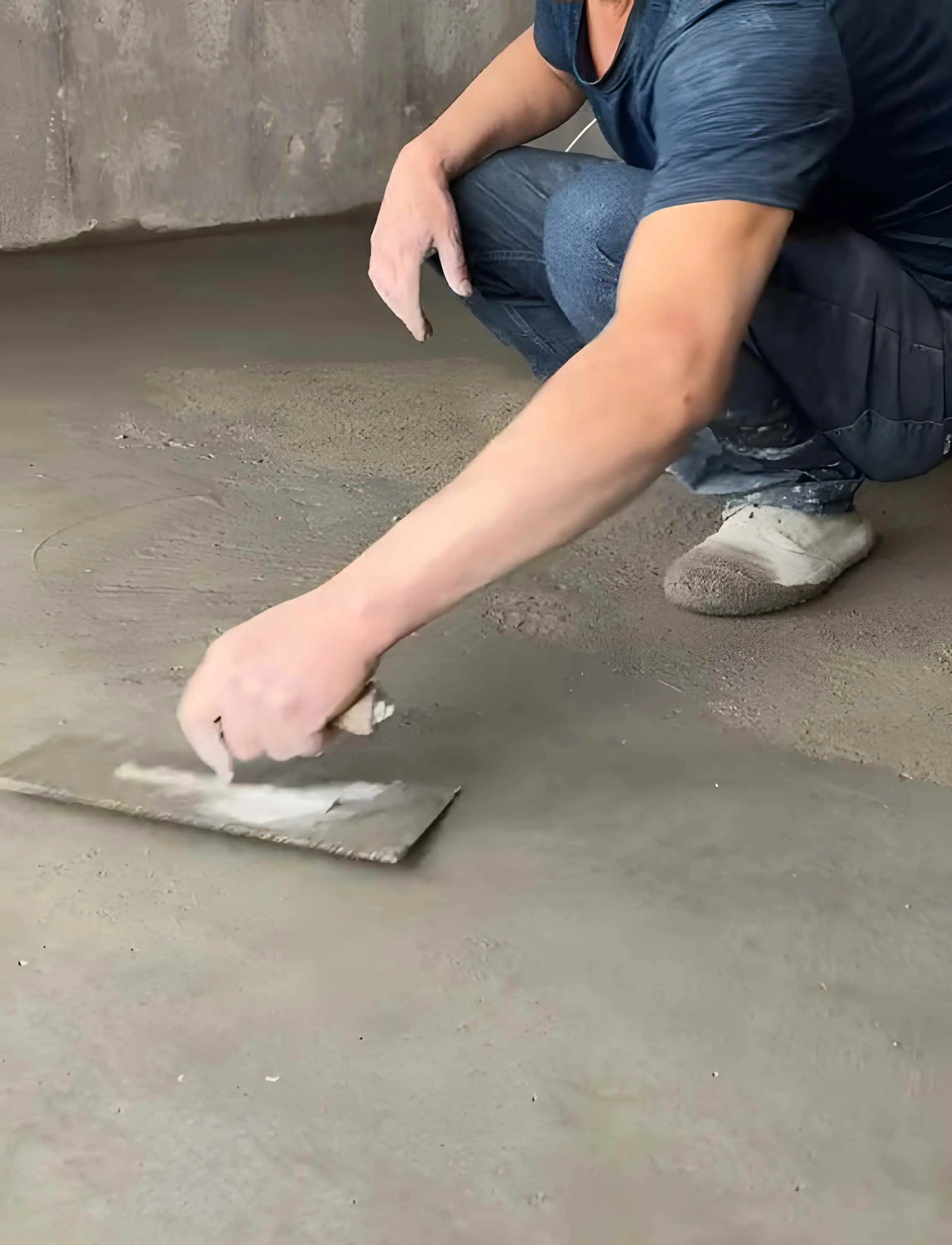 将混合物倒入施工区,任其像水一样流淌散开,等待其自动找平。搅拌好的浆料必须在20分钟内用完。