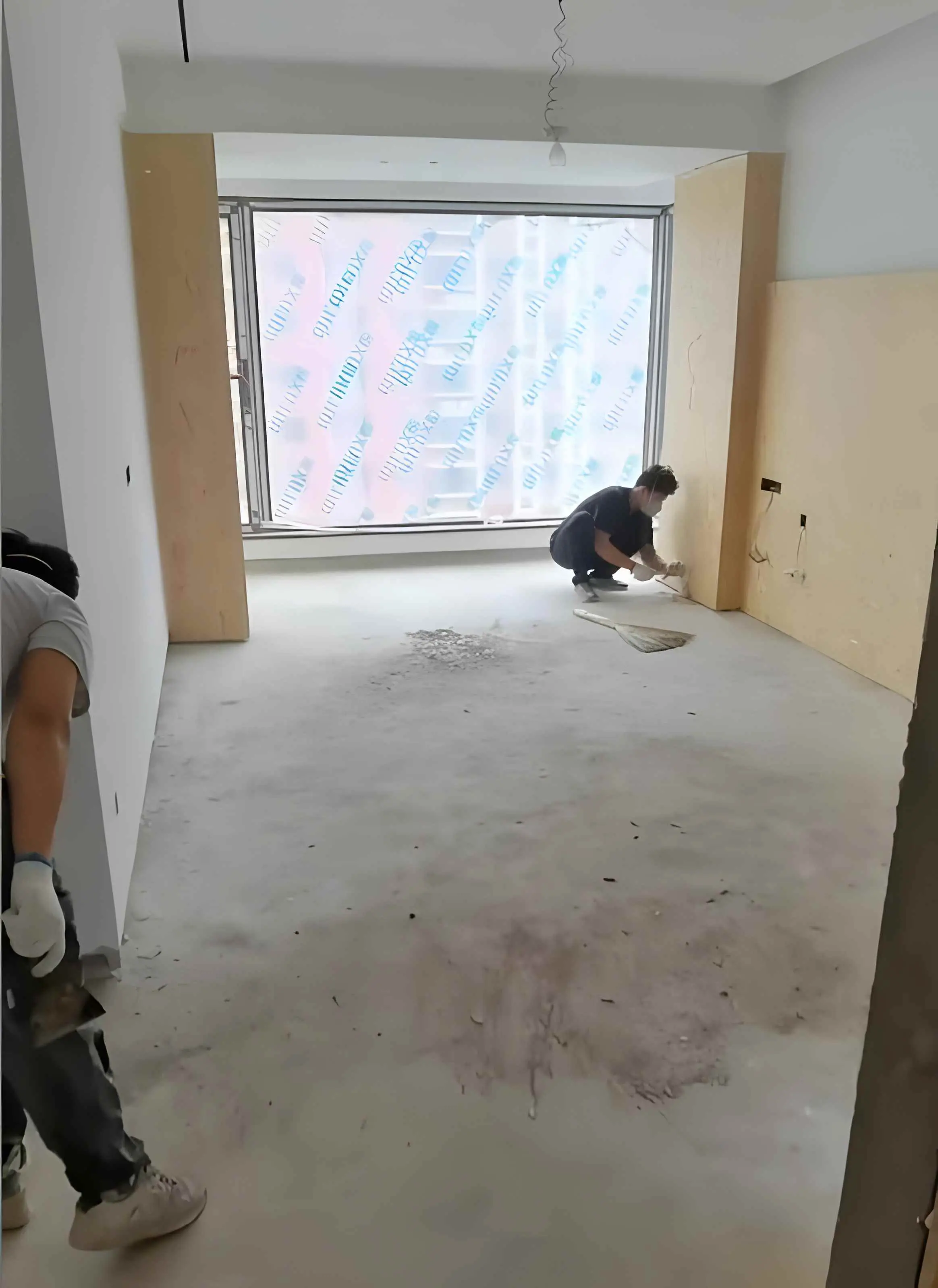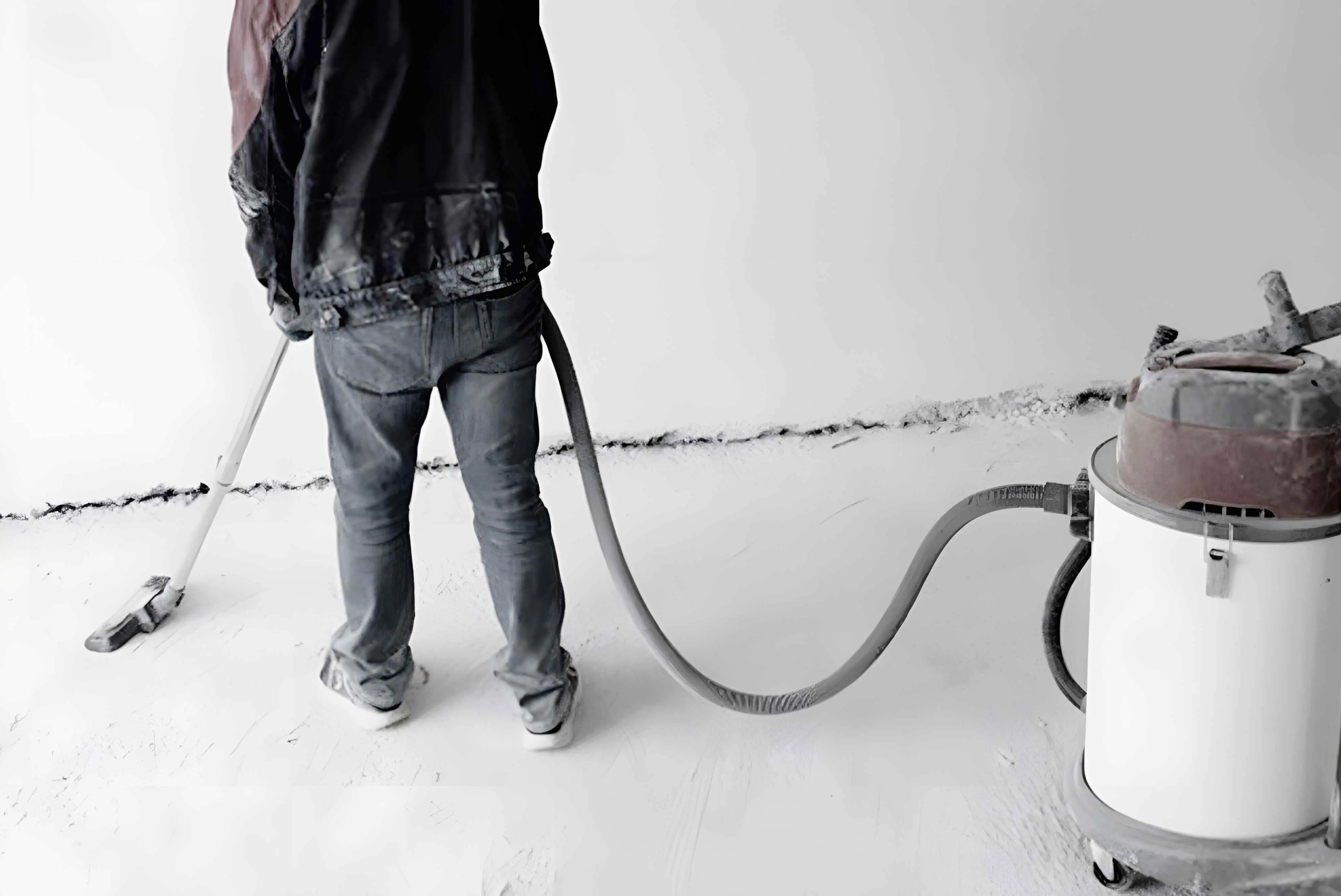 用打磨机对基层进行打磨,去除油漆、胶水、水泥残渣等残留物,之后用吸尘器进行清理。