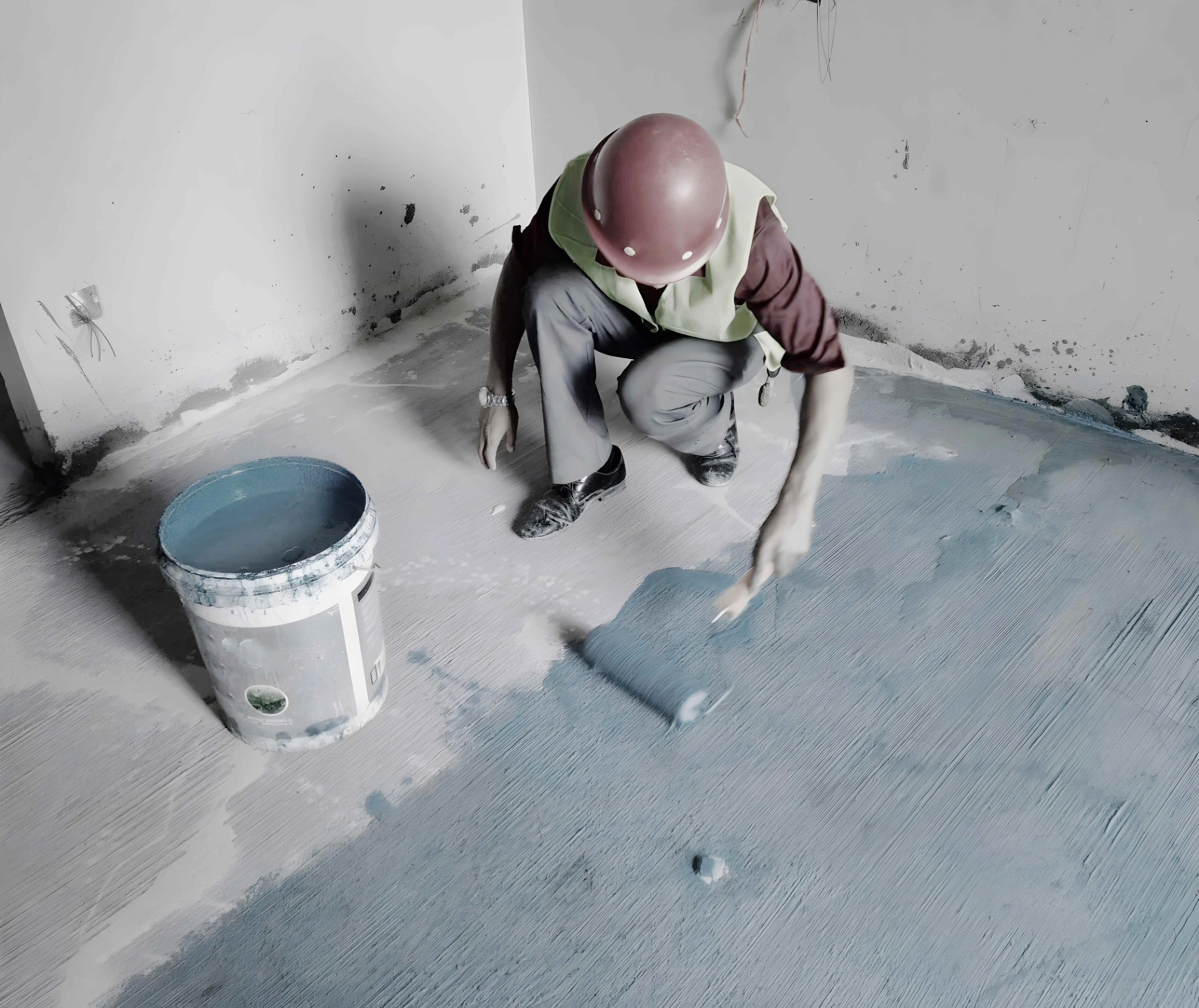 用羊毛刷在地面滚涂界面剂一至两遍,大约3-8小时即可干燥。界面剂可以对基层进行封闭,防止自流平砂浆过早丧失水分,并且还能增加地面基层与自流平砂浆层的粘接强度。