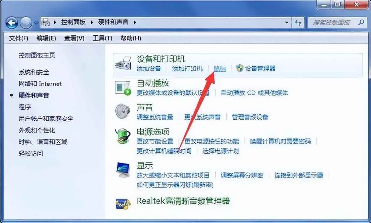 3、然后点击设备和打印机选项下的“鼠标”选项进入。
