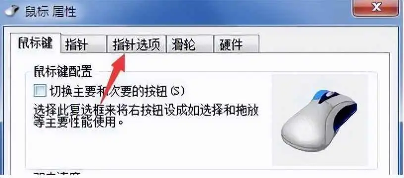 4、点开鼠标属性窗口切换至“指针选项”分页。