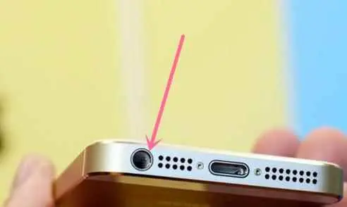 看这iPhone的耳机孔,箭头方向隐约看见有几个圆形金属触点同样位置也对应着之前耳机图上工作区域。当耳机全部插入之后,被手机系统检测切换成耳机音频模式,这个就是它工作原理。