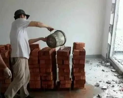 因此,在砌筑前一定要确保红砖充分浸湿。