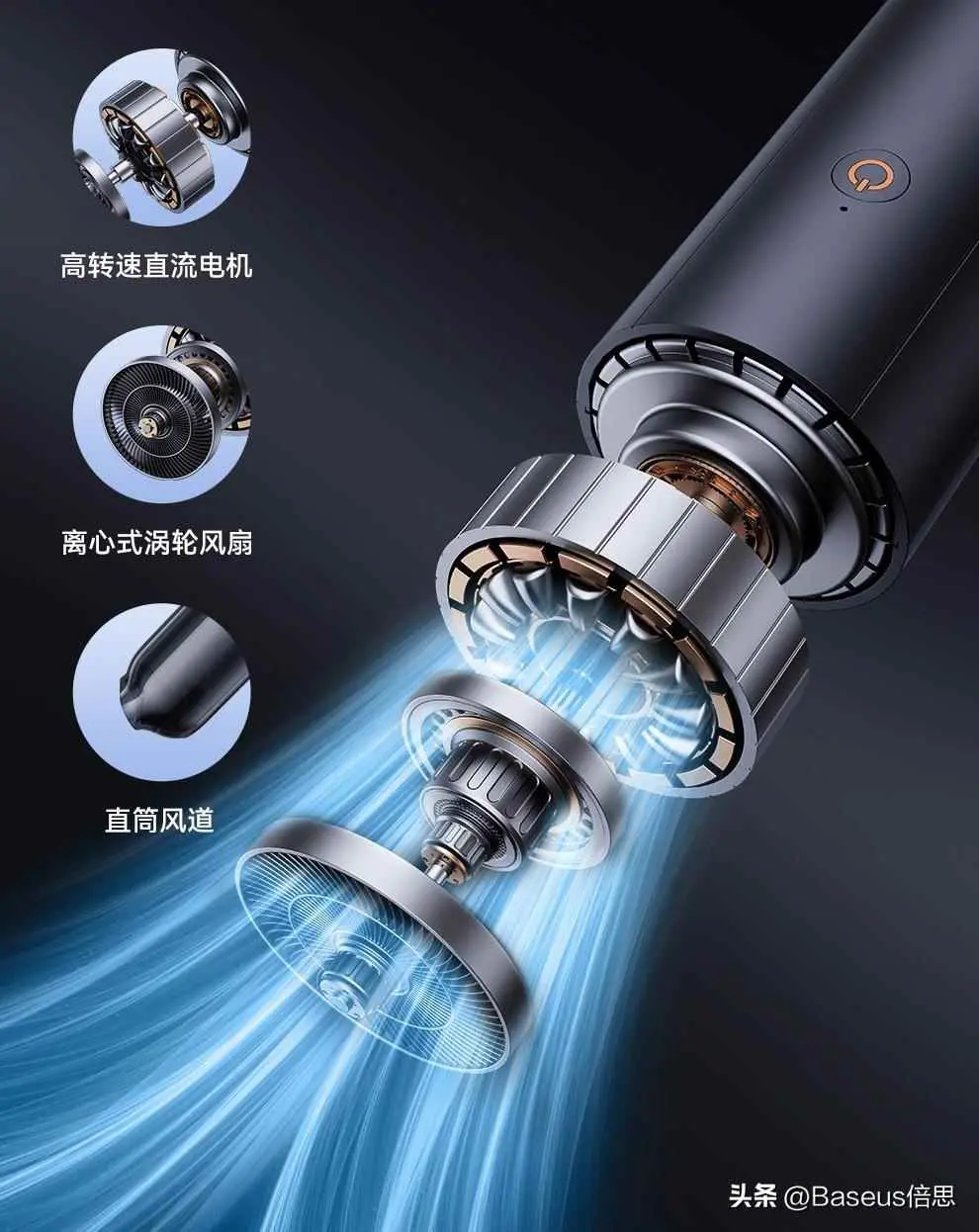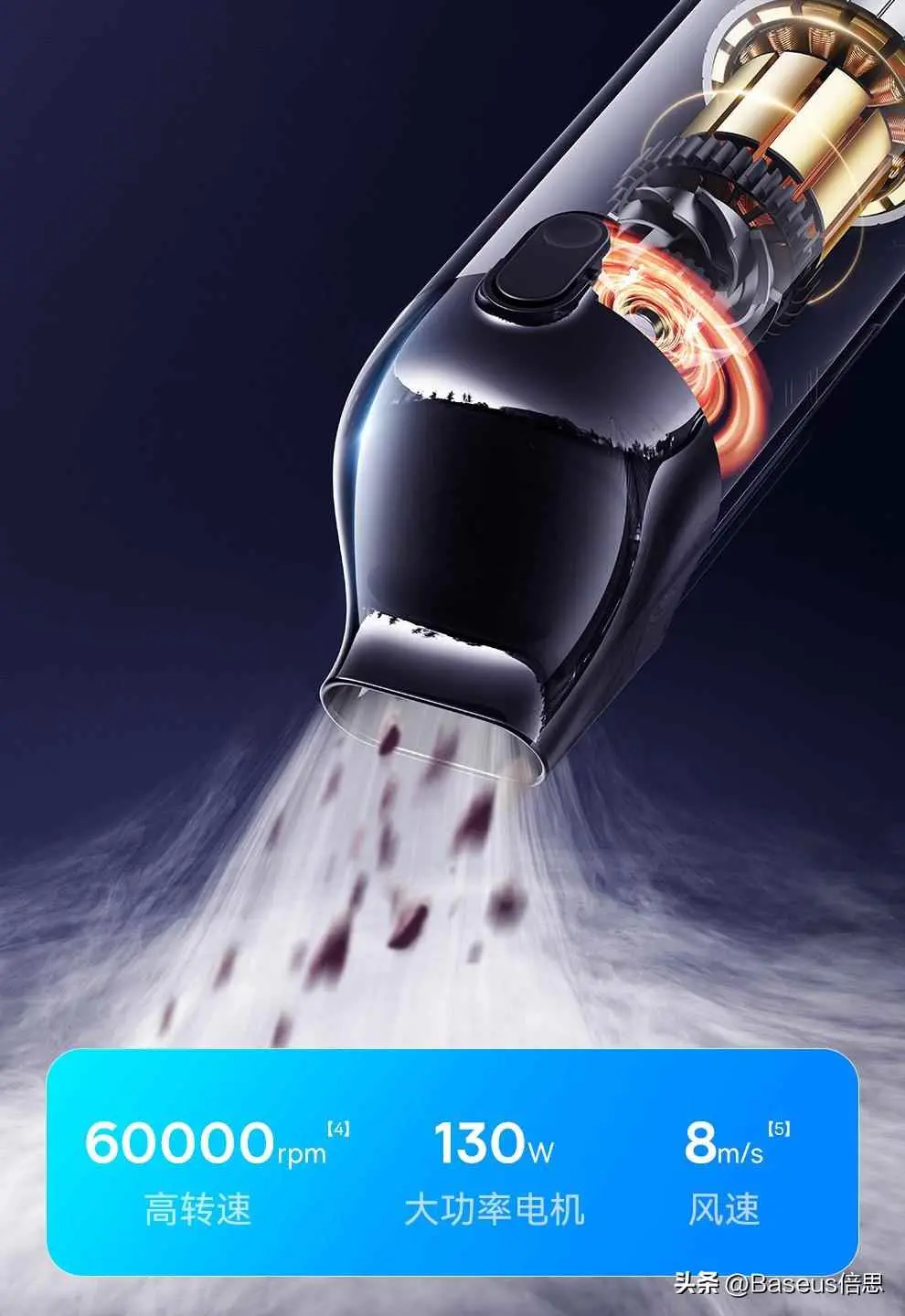 如何让吸尘「无后顾之忧」呢?Baseus倍思 A5 车载吸尘器的答案是:创新气旋分离系统。