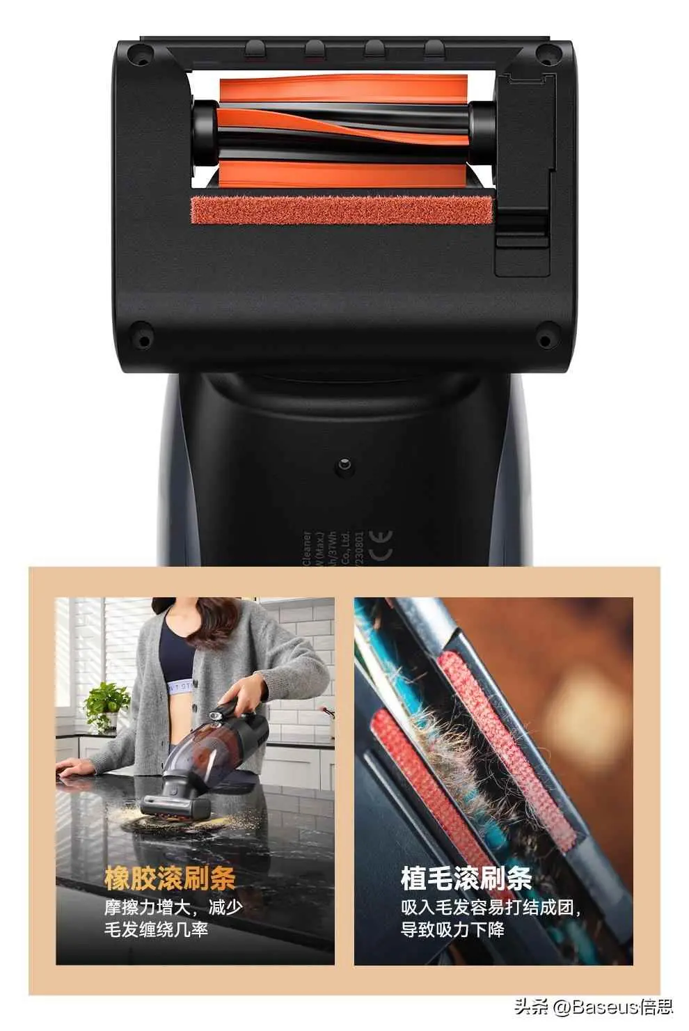而对于很多用户困扰的毛发缠绕问题,在 AP02 上 Baseus倍思创新搭载「防缠绕技术」:采用全新的橡胶电动滚刷条,区别于植毛滚刷,有效减少缠绕,轻松打理,省心且干净。