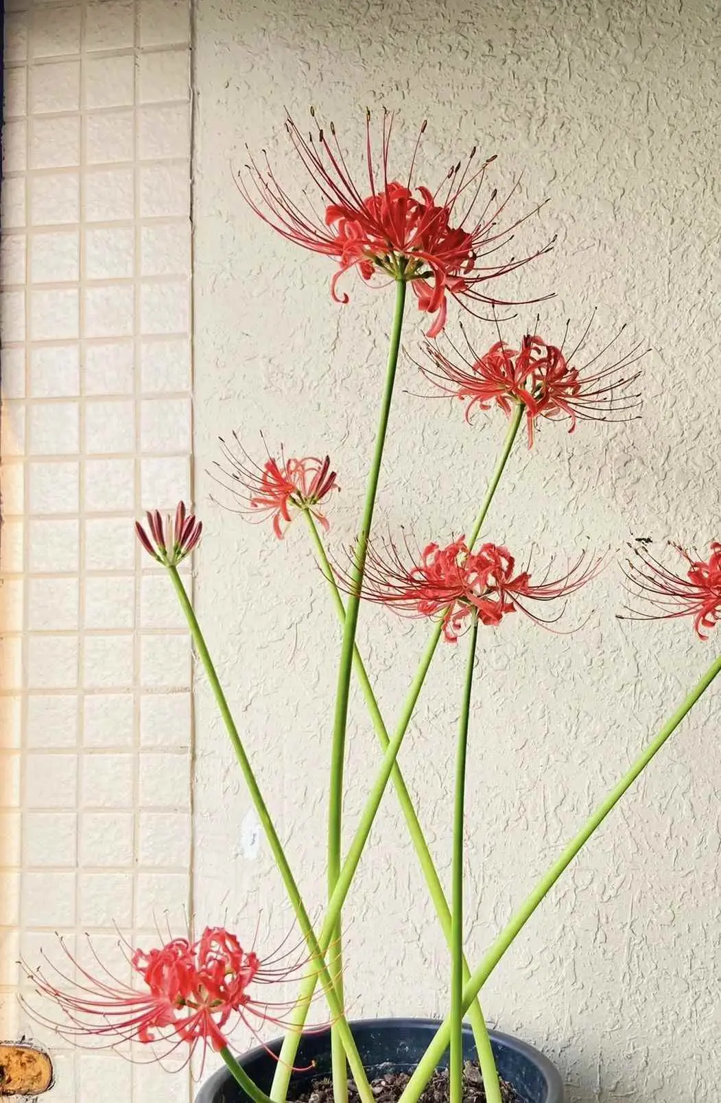 曼珠沙华,也叫彼岸花,养过彼岸花,应该知道,花朵和叶片是不会同时出现的,故名为花叶不相见,代表分离,寓意不吉。它的体内含有生物碱,全株都有毒花朵的毒性最大,别看长的妖娆美丽,却是最危险的。