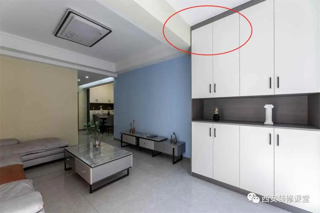 ▲如图双眼皮都做了,衣柜上不做吊顶?这个是什么操作呢?自己都没有中央空调,学别人做什么双眼皮单眼皮,本身就是时刻翻车的做法,后期挂机空调更麻烦《双眼皮/单眼皮吊顶,一定考虑好定制和空调》