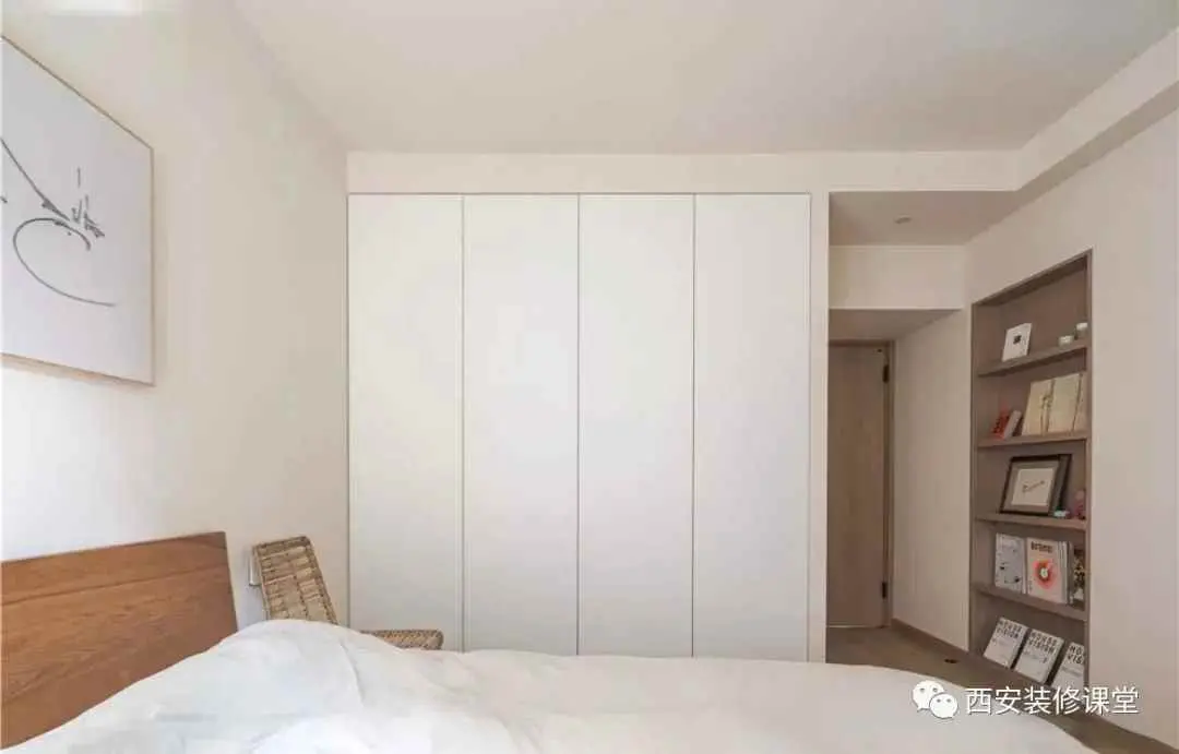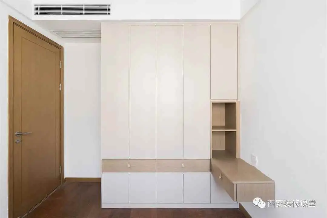 ▲卧室有空调吊顶,要不就只有空调吊顶,其他什么都不做,要不就是宽边吊顶,衣柜肯定是吊顶下方严丝合缝的做法