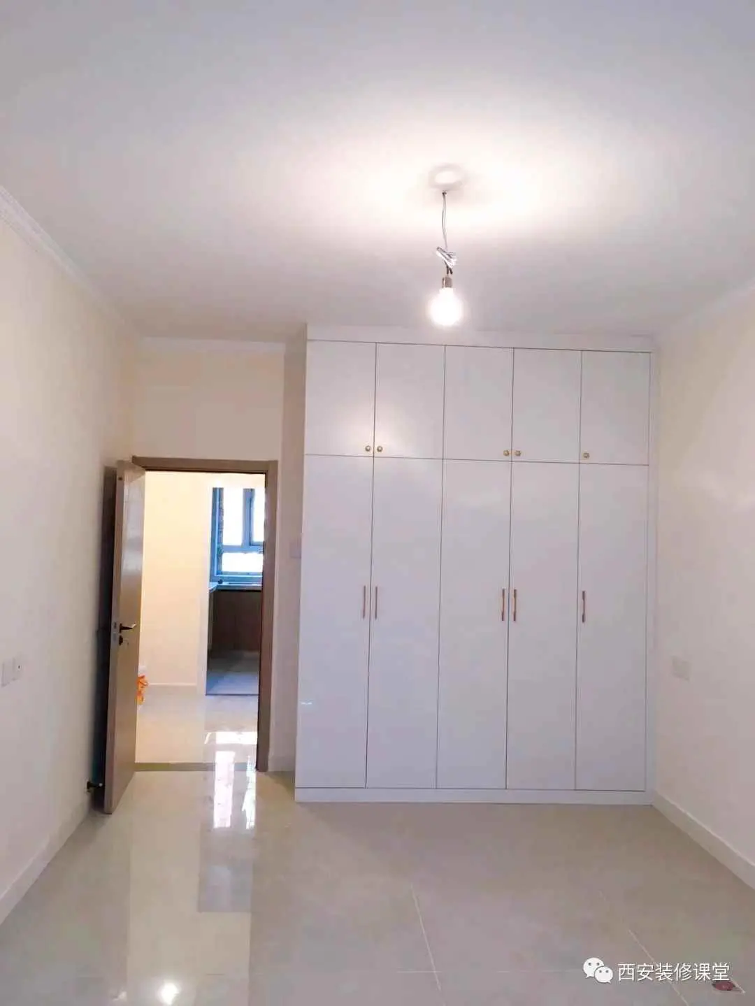 ▲与其石膏线难看自己又不会弄,直接不要任何吊顶,唯一就是给油漆工交代衣柜位置横平竖直而已,这样即使你没有吊顶衣柜上方缝隙也是均匀的