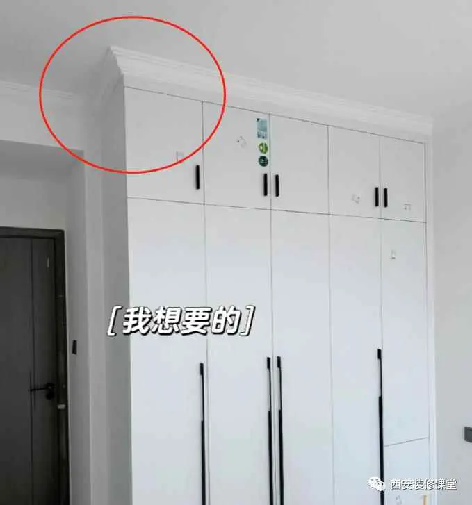 ▲自己没有那么好的工艺,就不要做这种一门到顶的衣柜,直接上方加外封板,这个缝隙是可以处理好的,你非得学别人的高级感,但是装修基础工艺完全达不到,结果只能翻车了