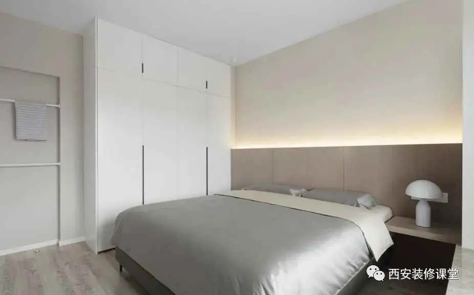 ▲想要石膏线,一定是衣柜上方拉通吊顶,然后石膏线形成一个方正的造型,而不是给衣柜上方做一坨吊顶,非得给卧室弄个刀把