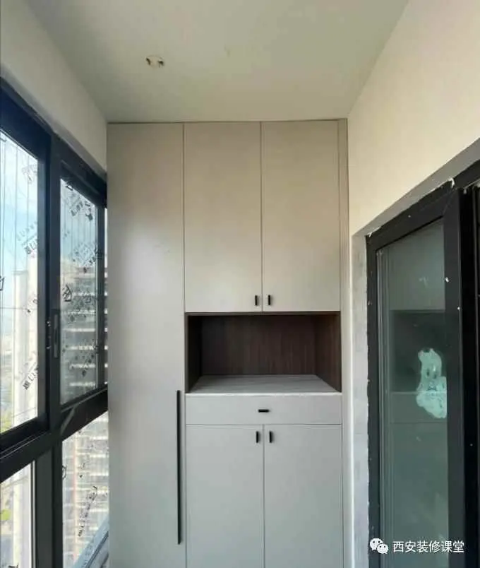 ▲如图左右两个收纳柜,哪个更美观?哪个更费钱?当你给阳台贴上瓷砖,做了哑口套的时候,你已经输了,又舍不得吊顶,认为这样柜子可以高一点?但是算一笔账你失去的更多;