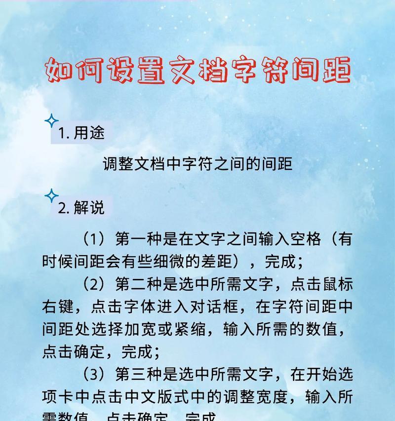 在日常生活中,我们经常会遇到文字排版不美观、阅读体验不佳的情况,这时候我们可以通过设置字符间距来达到优化排版、提升阅读体验的效果。本文将为大家详细介绍字符间距设置的技巧,让你的文本排版更加优美。