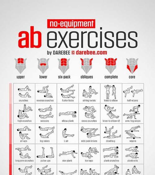 在家锻炼腹肌不需要任何器械,只需要一些简单的动作和耐心。通过上述15个方法的训练,相信您可以轻松打造出健康、美丽的身材。