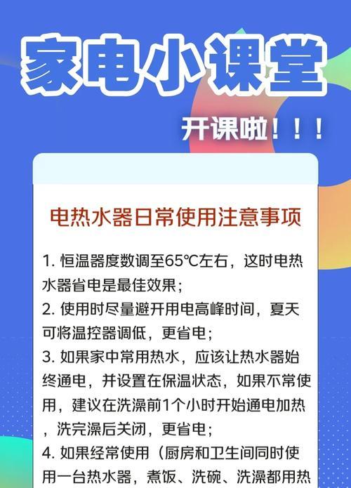 在现代家庭中,热水器已成为生活必需品。它为我们的生活带来了极大的便利,但同时也成为家庭用电的一个重要组成部分。如何正确使用热水器,实现省电的目标,是每个家庭用户需要掌握的技能。本文将详细介绍热水器省电的正确操作,帮助您更有效地利用这一家用电器,同时减少电费支出。
