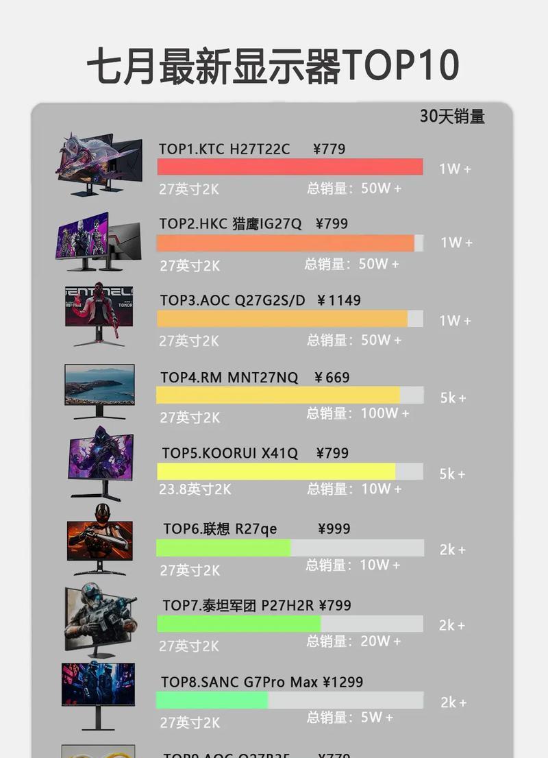 AOC一直以来被誉为性价比之王,其显示屏产品不仅性能稳定,而且价格亲民。今年,在激烈的市场竞争中,AOC成功挤进了前三名。
