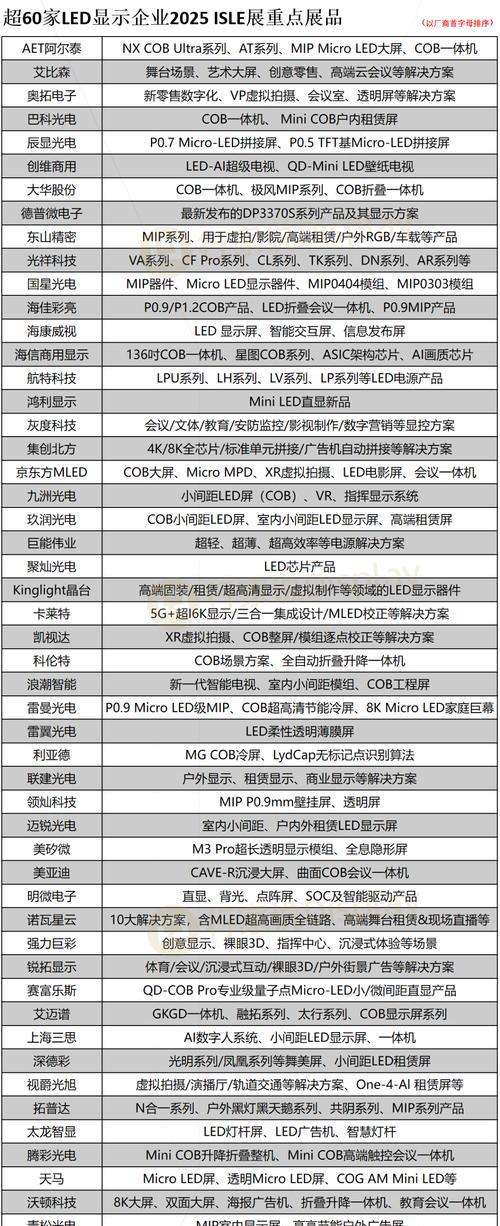 随着科技的不断进步,显示屏已成为我们日常生活中不可或缺的一部分。而随之而来的就是众多品牌的涌现,让消费者在选择时变得愈加困难。本文将以盘点显示屏品牌排行为主题,为大家提供一份参考,揭秘市场龙头,分析品牌优劣。