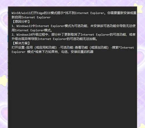 随着互联网的飞速发展,IE浏览器一直以来都是广大网民最常用的浏览器之一,但是有时候我们会遇到一些问题,例如IE图标不见了,这时候就会让我们感到头疼。如何找回IE图标呢?下面就为大家介绍几个简单的妙招。