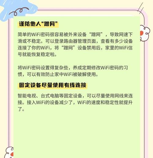 在使用WiFi时,建议关闭一些不必要的设备,减少对WiFi信号的干扰。比如说使用手机时可以关闭电脑、电视等设备,以提升WiFi信号。