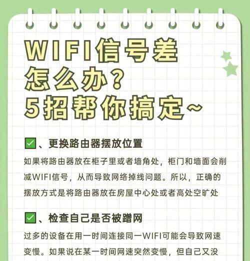 通过上述方法,我们可以轻松解决WiFi信号差的问题。选择合适的路由器,调整路由器位置和信道,使用WiFi信号增强器等方法都可以帮助我们加强WiFi信号,让我们在上网时不再受到WiFi信号不稳定的困扰。