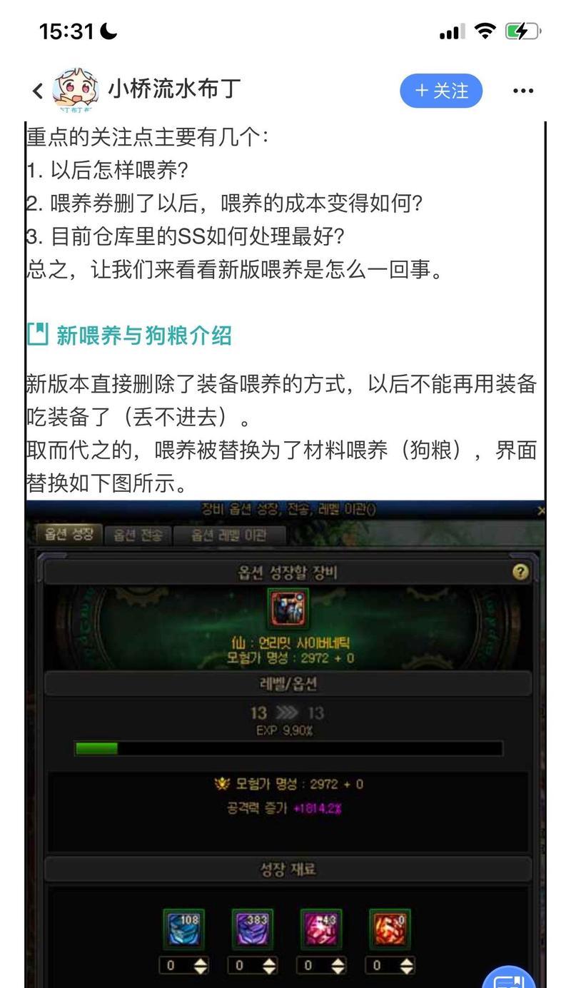 在进行喂养时,我们需要掌握合理搭配喂养道具的技巧。在进行装备强化时,可以搭配使用防爆粉来避免强化失败。