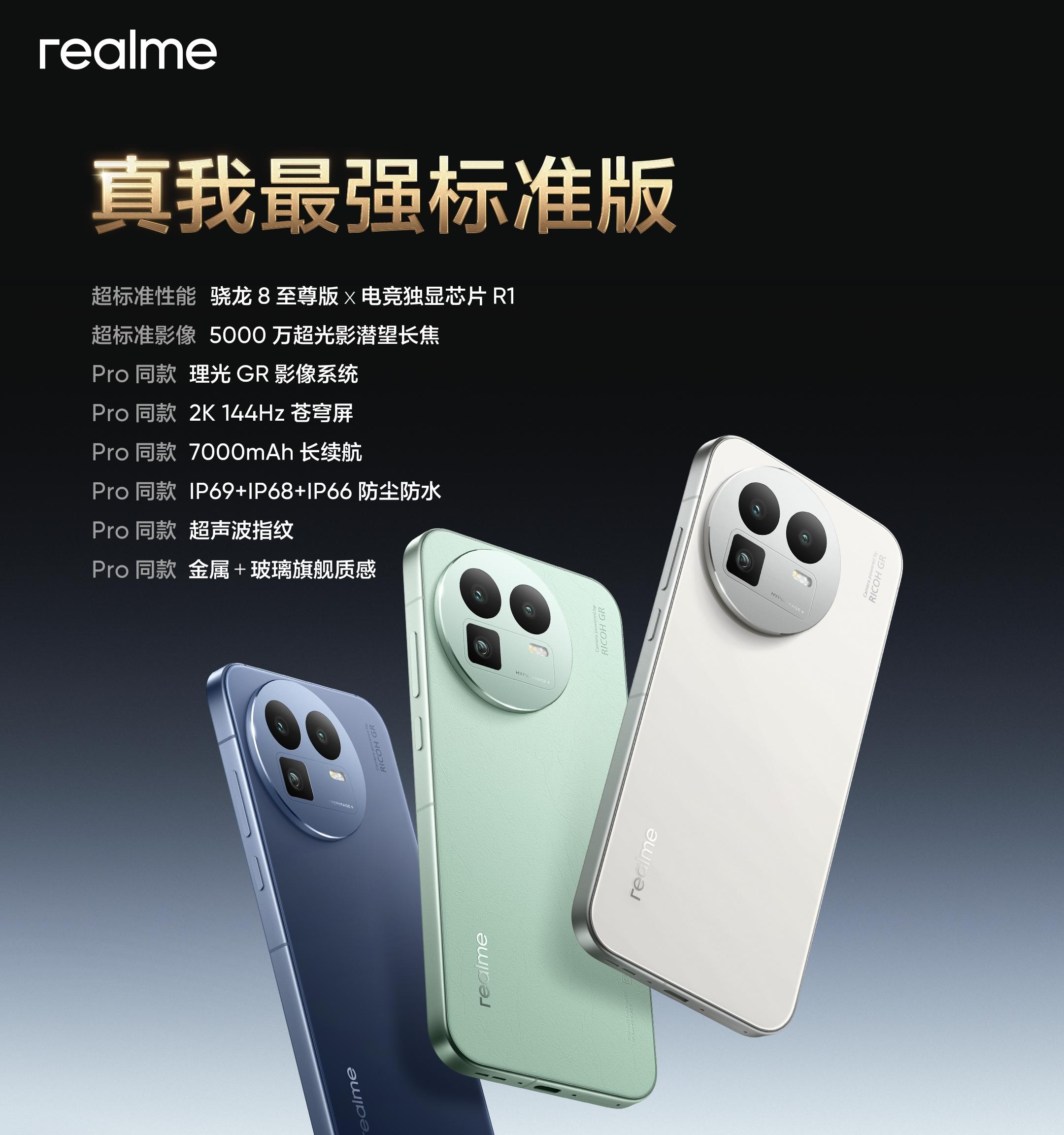 今年很多标准版机型都很惊艳,比如即将发布的真我GT8,不仅有2K+144Hz旗舰直屏,还有7000mAh电池和5000万潜望式长焦镜头。同时真我GT8的外围配置也很厚道,不仅有金属中框和3D超声波指纹识别,还有理光RG联名影像和IP68IP69满级防尘防水等等,以下是该机的详细内容。