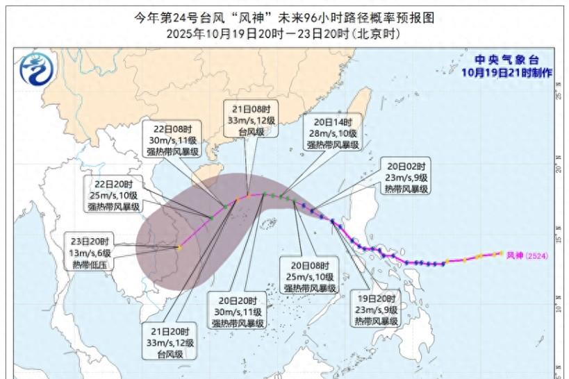 先来看台风,今年第 24 号台风“风神”,目前位于距离海南省三沙市(西沙永兴岛)偏东方向约710公里的洋面上,中心最大风力为9级。