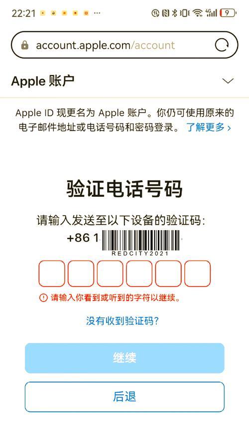现在,您需要验证您的账户,以便苹果能够确认它是真实的。这个过程通常包括输入验证码或者在电子邮件中点击链接。