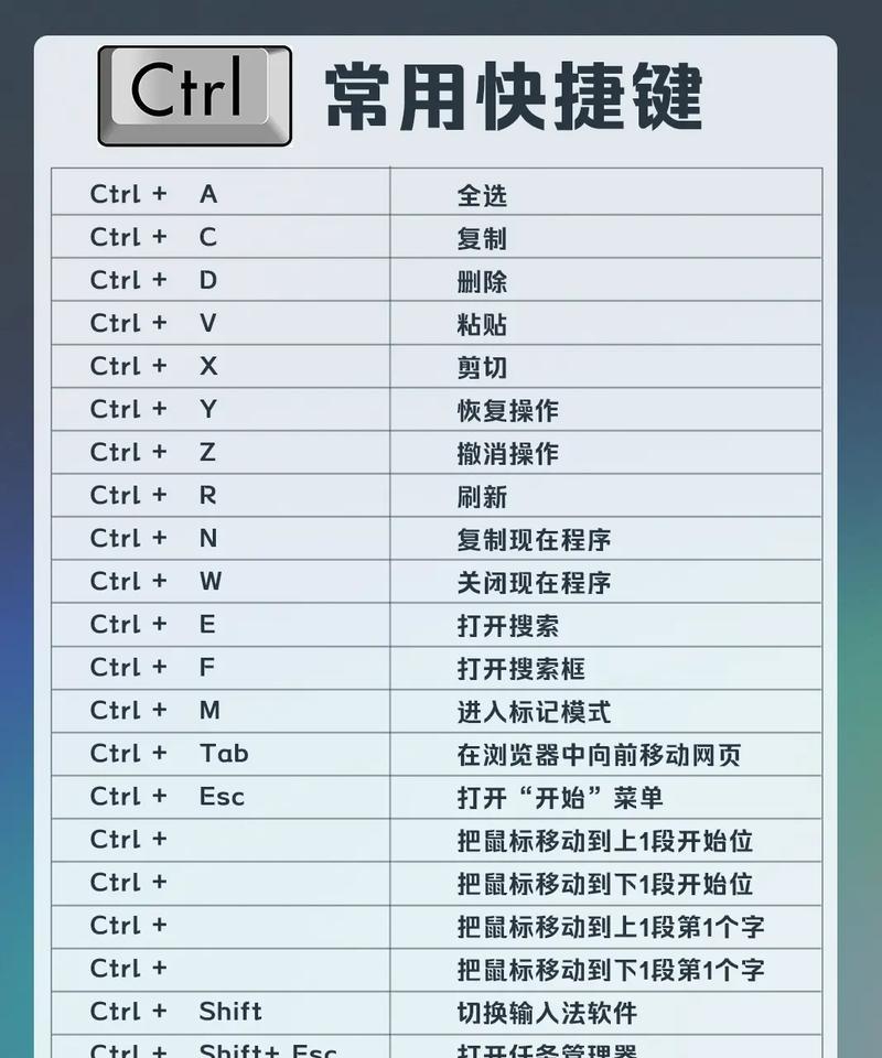 掌握快捷键,高效办公?探究以Ctrl+各种键的功能