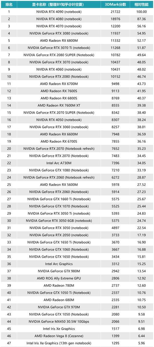 笔记本游戏显卡排行榜Top10?2024最新排名及推荐