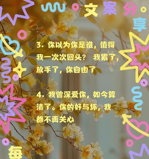 放下一段感情需要时间,需要勇气和毅力。倾听自己的内心,寻找自己的创伤点,才能更好地认识自己,更好地放下这段感情。记住,学会放手,专注于自己的成长和发展,迎接新的挑战。新的开始即将来临,祝你好运!