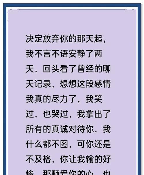 恋爱是人生中重要的一环,但有些时候我们不得不面对结束。有时分手是必须的,因为我们需要前进,需要成长,需要迎接更好的人和事。但是放下一段感情并不是容易的事,需要大量的勇气和毅力。本文将提供一些有效的技巧,帮助你彻底放下一段感情,重新开始自己的新生活。